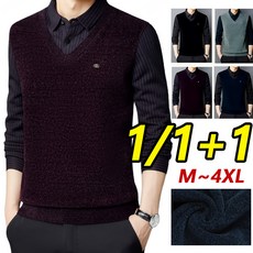 1/1+1셔닐 페이크 레이어링 남성 보온 상의 하이퀄리티 스탠 긴팔 남성 보온 기모 상의