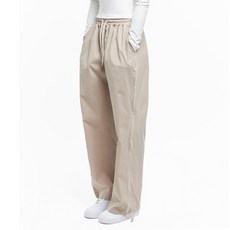SIDELINE DROP PANTS (BEIGE) 삥줄 와이드추리닝 나일론 트랙팬츠