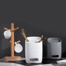 살림을 더하다 뚜껑있는 물빠짐 젓가락 수저통, 화이트, 1개