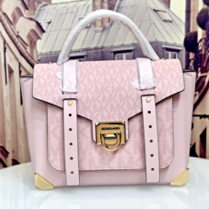 마이클 코어스 Michael Kors 맨해튼 미디엄 스쿨 사첼 로고 백 핑크 다크 파우더 블러쉬